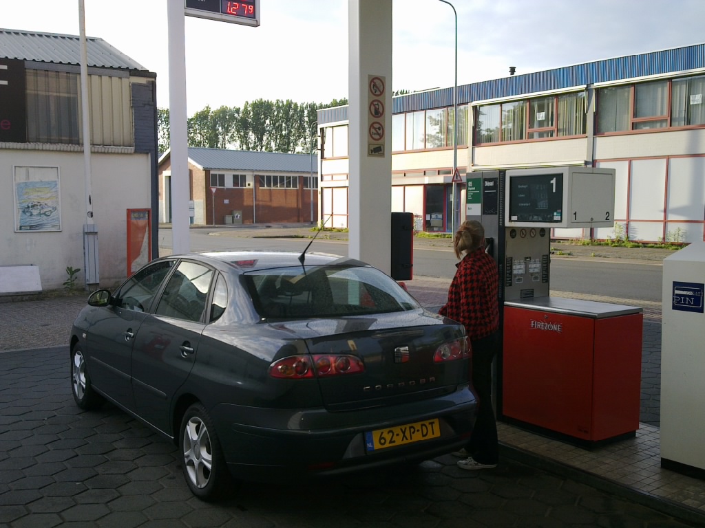 De vrouw oefent alvast even met tanken:)